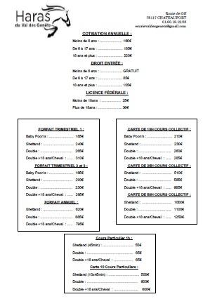 Lors de l'inscription, la cotisation annuelle, la licence et le droit entrée (uniquement pour la 1ère année) sont obligatoires quelque soit la date de l'inscription.